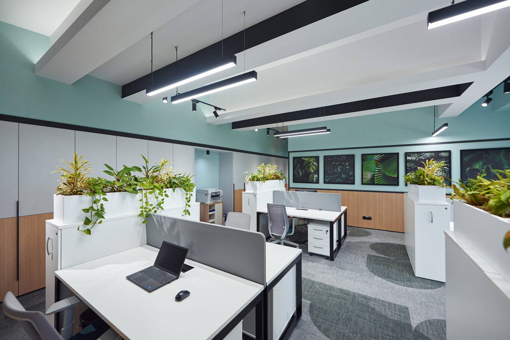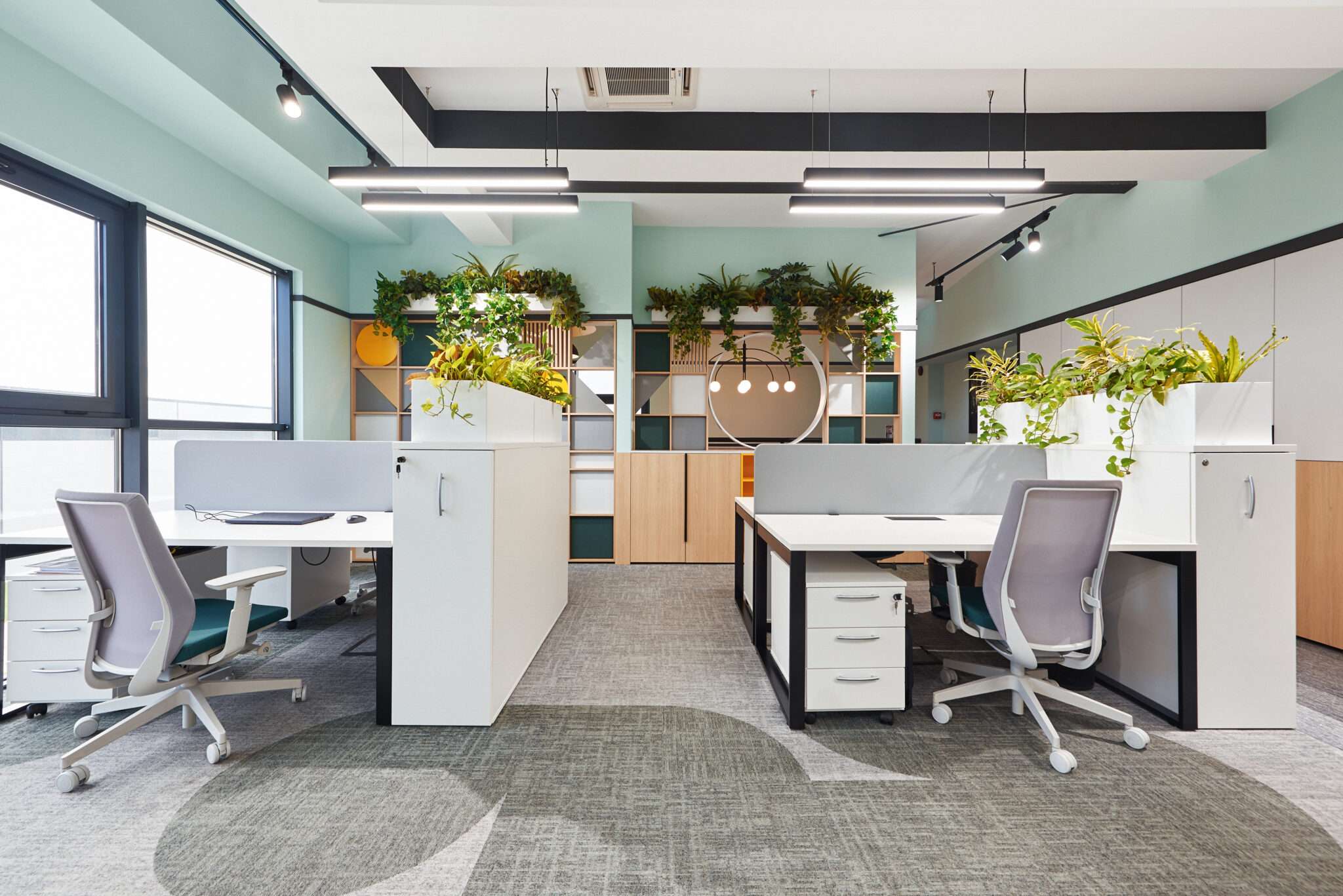 Amenajarea biroului este atent concepută pentru a promova colaborarea și inovația, oferind diverse spații adaptate diferitelor stiluri și cerințe de lucru. Fiecare spațiu de lucru este creat pentru a spori productivitatea, asigurând în același timp confortul.