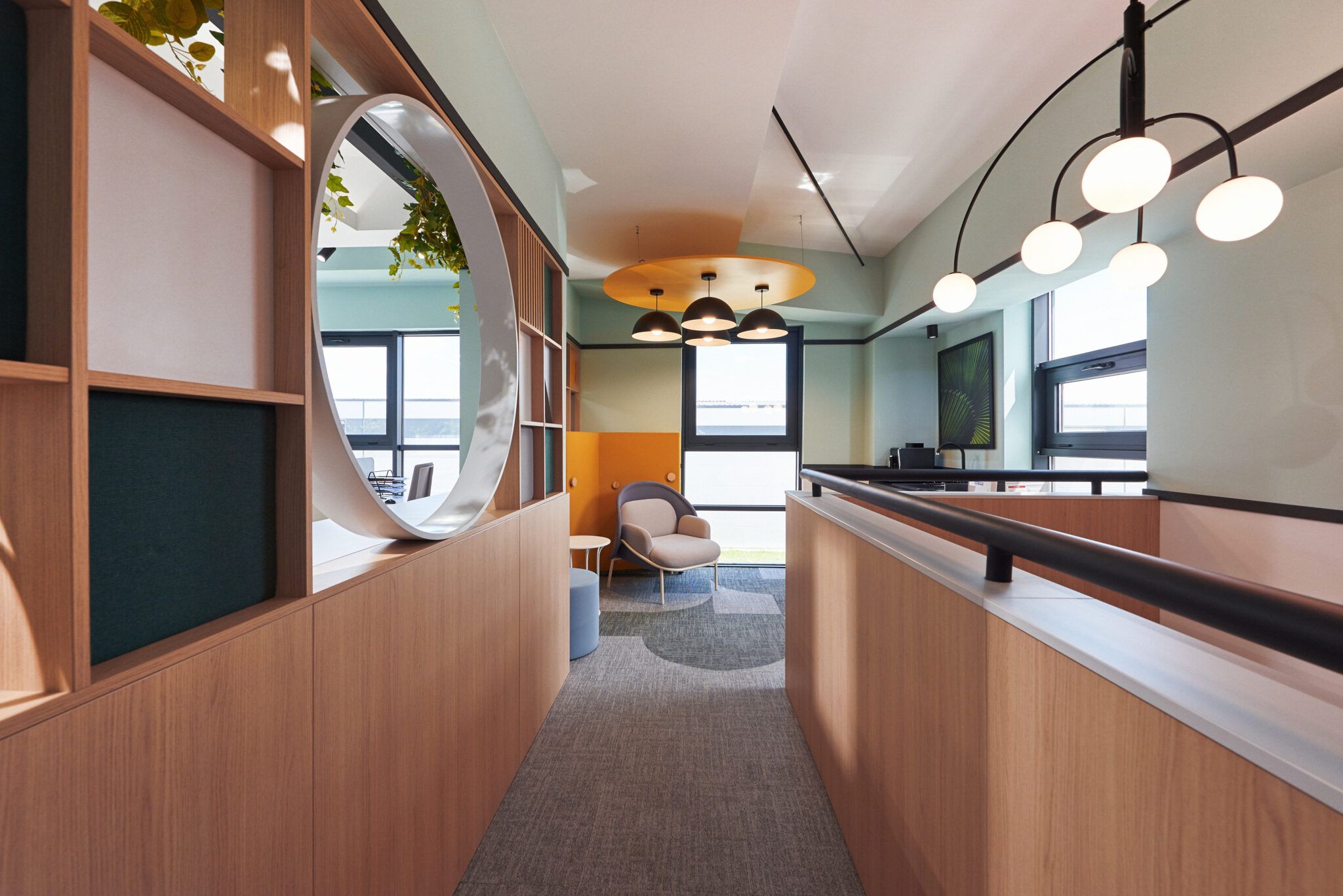 Bine ai venit la birourile CESS, un spațiu de lucru vibrant și dinamic care îmbină productivitatea cu distracția într-o simfonie colorată a creativității. De îndată ce intri, ești întâmpinat cu o explozie de culori, dominată de portocalii plini de viață și tonuri calmante de albastru deschis, infuzând energie și bucurie în fiecare colț.