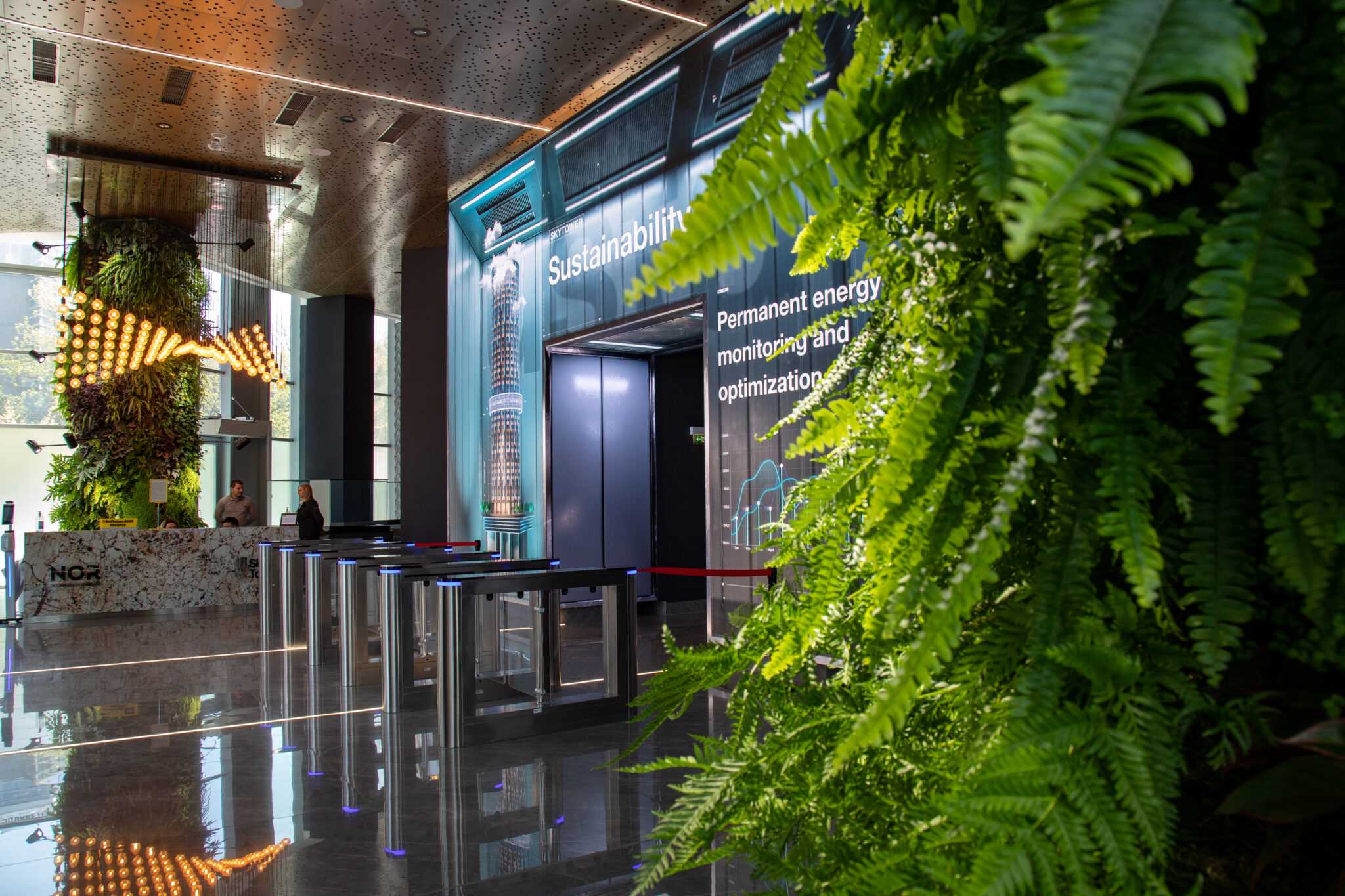 Lumina este un element cheie la interioarele SkyTower, cu lumina naturală care curge prin ferestre mari, aruncând o strălucire caldă asupra mobilierului și decorului curat. Amplasarea luminii artificiale luminează și mai mult spațiul, creând o ambianță care motivează și revigorează.